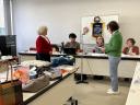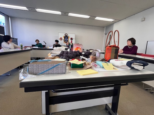 全員が持ち寄った品々、バック、手作りクッキー、ストール等がテーブルいっぱいに並べられ、出品の品の魅力も然ることながら、オークションリーダー、アシスタントの売り手振りは、華やかで、押しつけがましくなく、売値を高めていく、素晴らしいものでした。